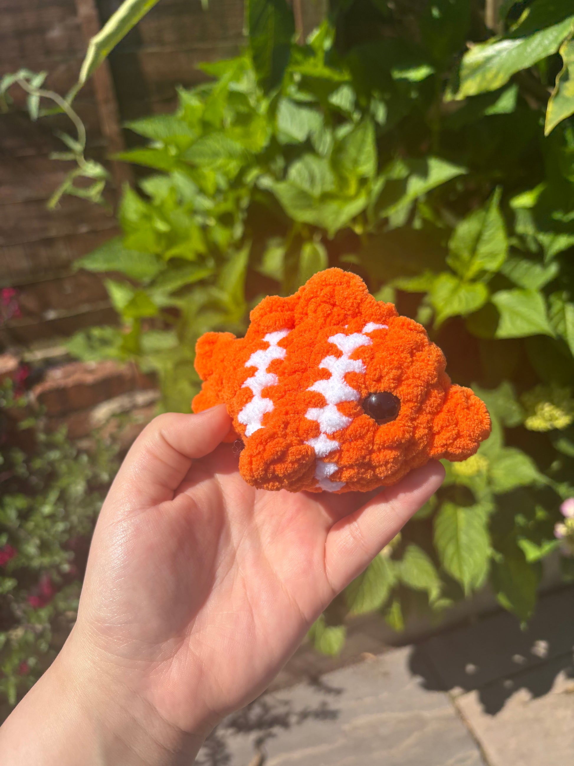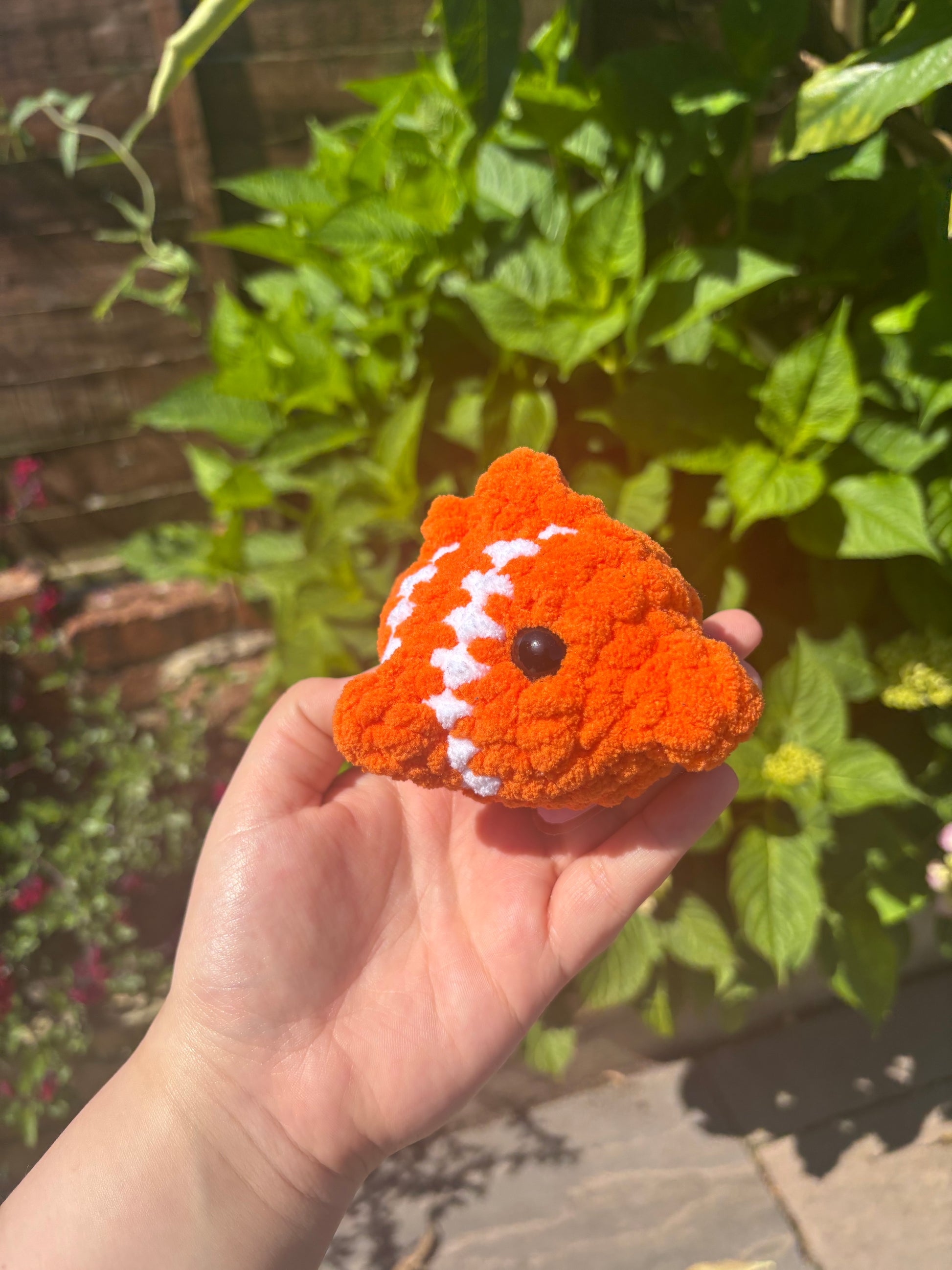 Handmade crochet fish made with love and care. Tested to relevant UK safety standards. Made to order.